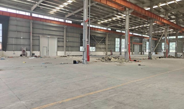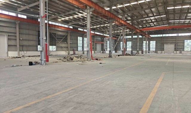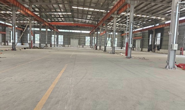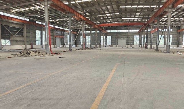 厂房是钢结构双层厂房,面积共9000平,3000平起租,可做注塑,包装材料,印刷,钣金,机械加工,仓库,电力充足,层高14米带独立大门,大车可直接开到厂房门口,地面已做好,园区内道路宽阔,公共卫生由专门保洁打扫园区内无任何污染性企业.交通方便、地面已做好。产证齐全,有办公楼,宿舍楼。